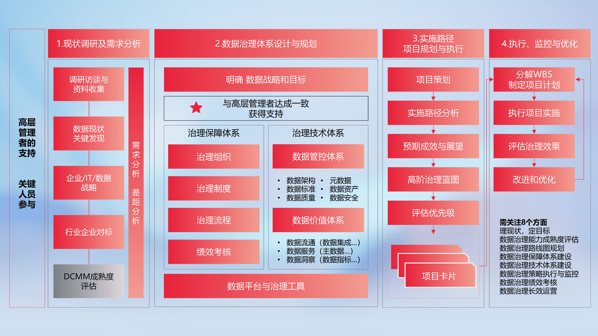 制定并执行统一的数据标准,,,规范数据定义和格式,,消除冗余和不一致性,,实现跨部门和跨系统的数据一致性,,为企业提供标准化的数据基础。。